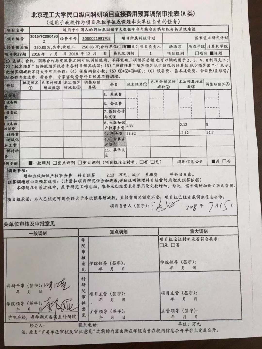 项目2016YFC0904902预算调剂