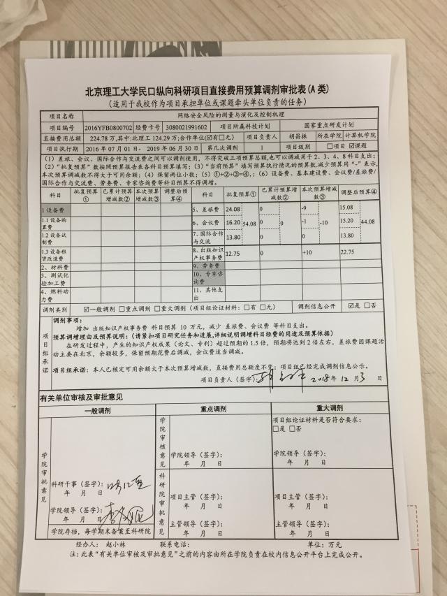 项目2016YFB0800702预算(一般)调剂