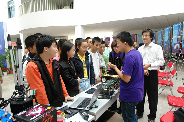 9月26日下午2:00~晚上7:30,本科生优秀创新作品展在良乡校区学生服务中心举行。60多名高年级同学携带40件作品参加了本次展览。作品以嵌入式系统专题竞赛、首都大学生机械创新设计大赛、大学生数学建模竞赛、“挑战杯”、全国大学生智能汽车竞赛、Honda中国节能竞技大赛等赛事的获奖作品及国家大学生创新性实验计划、校SRIT计划优秀作品为主,按照学科大类,分为信息、机电、理化、管文四个展区。展览以实物演示和现场交流为主。有2000多名学生参加展览,现场气氛相当热烈,很好的营造了良乡校区的实践教学氛围,达到了预期目的。