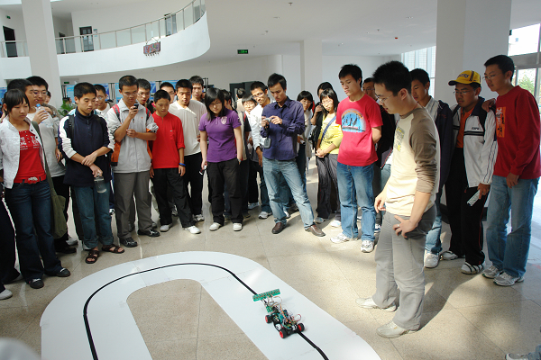 我校智能控制大赛获奖作品——智能小车,正进行现场表演