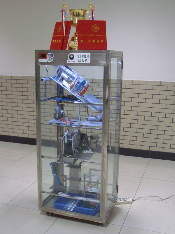 在刚刚结束的第三届全国大学生机械创新设计大赛中,我校参赛的作品“废旧电池回收机”获得了全国一等奖!