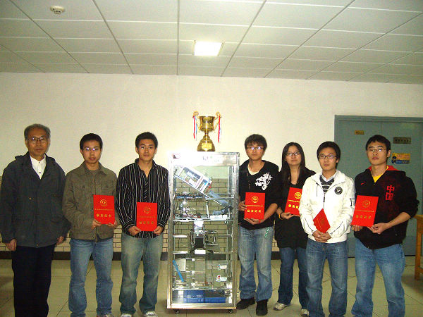 竞赛队的同学们在指导教师的带领下发扬了不畏艰难、勇攀高峰、吃苦耐劳、持之以恒的科学研究精神。经历了选题、设计、加工、制作、装调的科学制作过程。在暑假2个月的时间里,他们放弃了一个学期学习后的休息,坚持在光电创新教育实验基地制作。在酷热的暑假,他们不断完善作品的设计方案,亲自动手完成整个作品的模块设计和整体装调;在举国欢庆的奥运时刻,他们默默的在实验室完善自己的作品,一直到比赛前一天,他们都在实验室奋斗拚搏,争取完美到每一个细节。