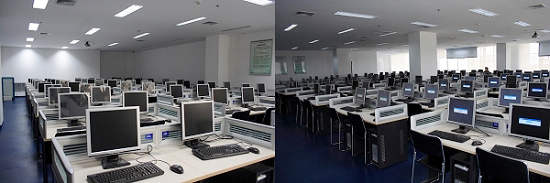 我校在良乡校区的计算机实验室位于良乡图书馆楼四层,实验室共有六个机房,600台计算机,总面积2700平方米。从2007年9月至今,实验室全天候为良乡校区学生提供服务,从周一到周日,每天早八点到晚十点连续开放,目前,实验室的管理人员有10名。