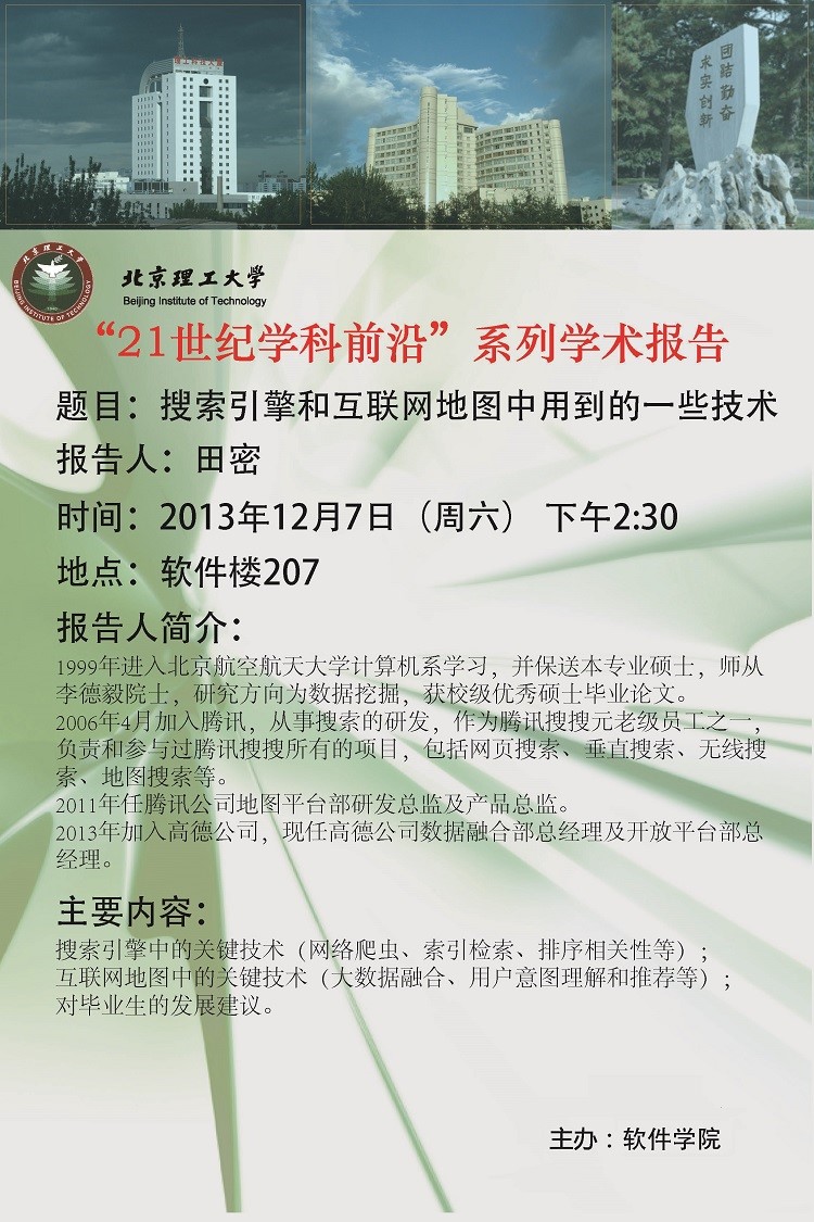 > 软件学院"搜索引擎和互联网地图技术讲座暨高德公司招聘会" 预告