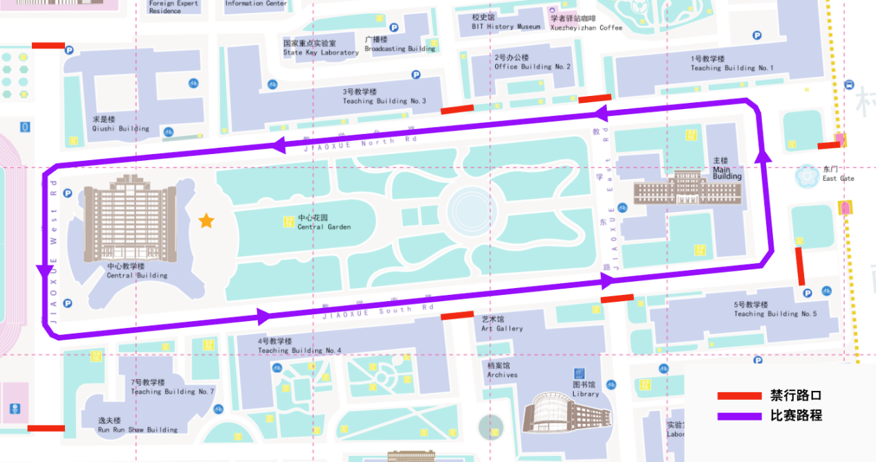 道路封闭期间机动车禁止通行、自行车和行人请走步道。同时,田径场内暂停健身与休闲活动。