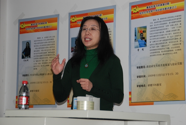 12月5日下午,2009年研究生党员骨干培训班系列讲座如期进行。本次讲座邀请的是北京理工大学人文社会科学学院社会工作与心理学系贾晓明教授,贾晓明教授是中国心理学会临床与咨询心理学专业机构与专业人员注册系统注册委员会委员,中国心理卫生协会心理咨询与治疗专业委员会委员,研究领域为心理咨询的理论与方法、青少年心理健康、婚姻家庭问题。