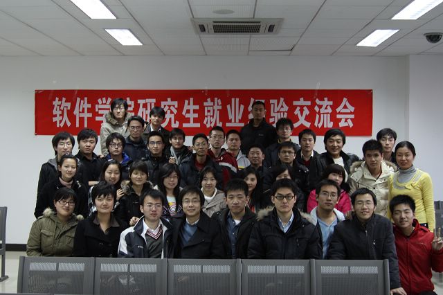 12月5日下午,由软件学院研究生会主办的软件学院研究生就业经验交流会在研究生楼605举举行。此次活动旨在帮助同学们更好地了解就业现状,提前做好就业准备,树立合理择业观,提高就业能力。七位已成功就业的2008级应邀嘉宾和大家一起分享了他们的就业经历与心得。