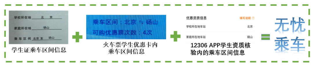 为了保证同学们正常购买学生票和无忧出行,请在离校前确保学生证个人信息及乘车区间信息、火车票优惠卡内个人信息、12306app内资质核验信息全部一致。