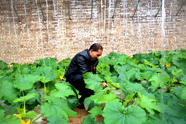 2019年3月6日,方山县桥沟村村民薛其平一大早又跑到大棚摘西葫芦,这个七分地的大棚,春节以来,上市蔬菜已经收入一万六千多元,这让薛其平笑的合不拢嘴。