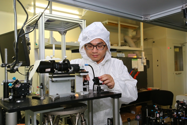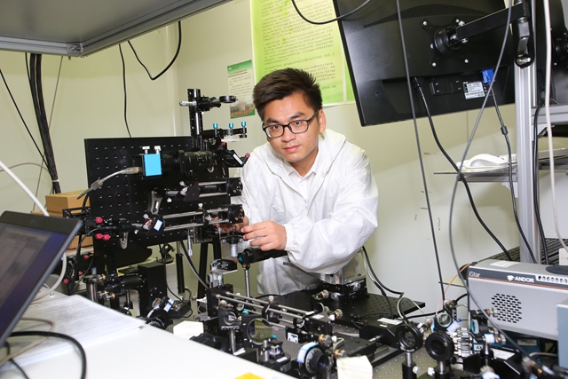 李博在实验室进行光路校准操作