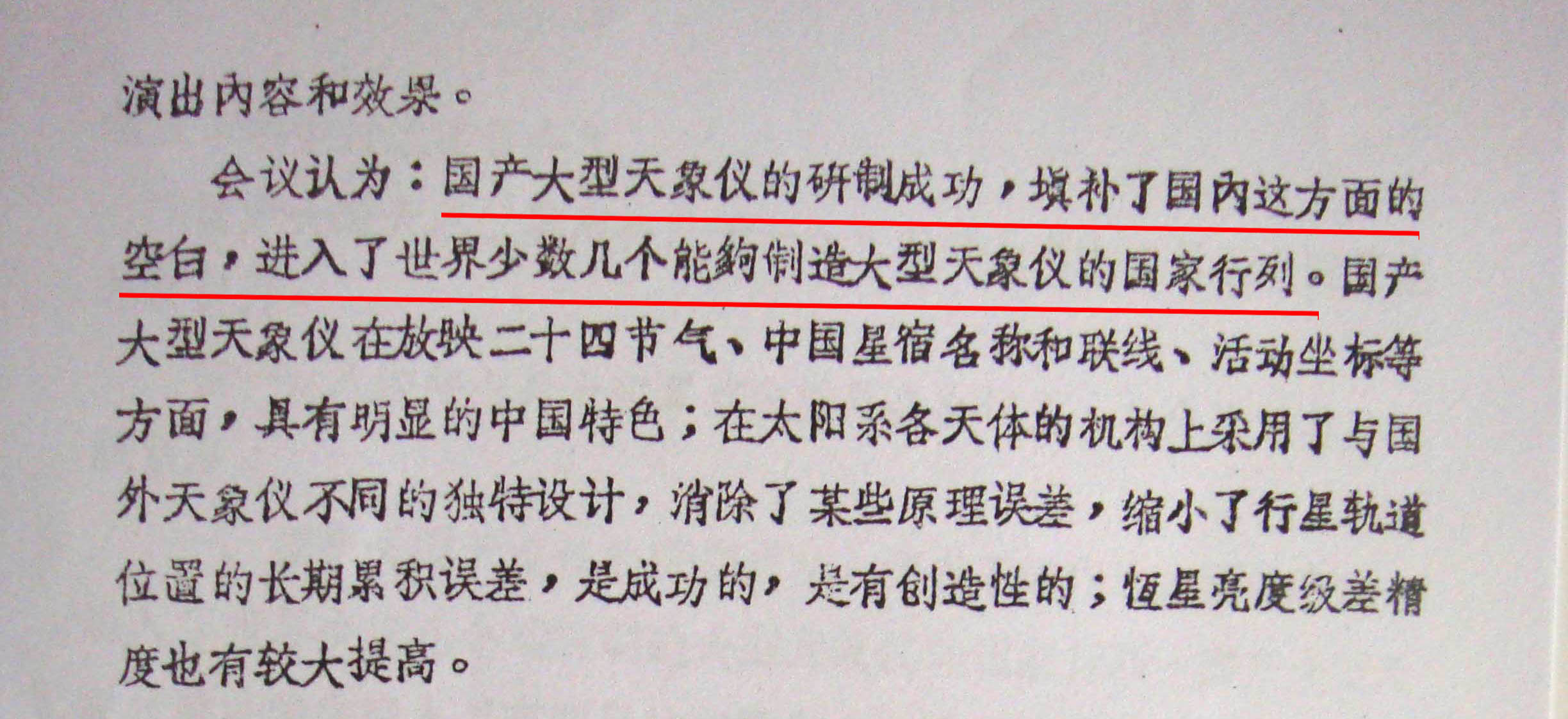 功夫不负有心人,在北京天文馆支持下,仪器系师生夜以继日地工作,从1958年7月到1958年10月,仅用三个月时间,就成功研制出了新中国第一台大型天象仪原理样机,并在北京天文馆进行了演示,引发社会各界的广泛关注。北京电影制片厂特意到学校将天象仪的制作和安装过程拍摄制作成纪录片,广泛播放。
