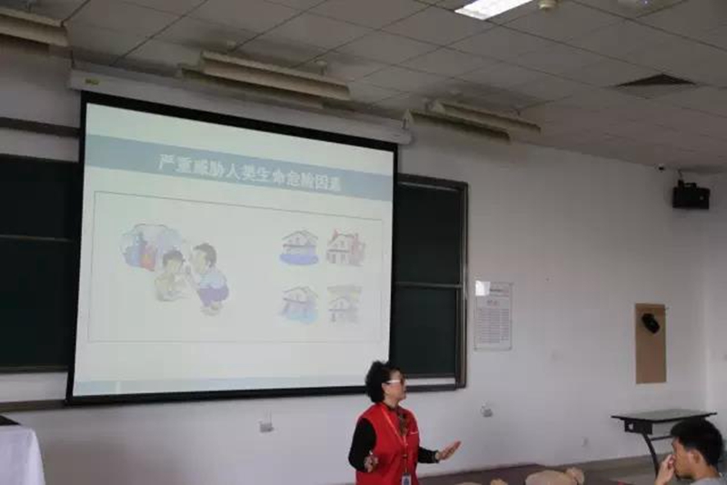 急救培训于上午9:00准时在理科教学楼401举办,我们有幸邀请到了红十字会的嬴奥老师进行讲解,嬴奥老师用饱满的热情与渊博的急救知识为志愿者们带来了一场充实而有意义的讲座,志愿者们受益匪浅。